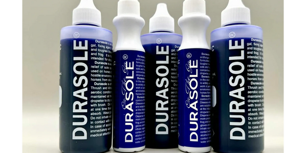 Durasole the most effective sole dressing on the market. Since 1978, Distributed primarily through farrier and veterinary suppliers, Durasole has been used extensively and successfully on equine athletes engaged in strenuous activities over difficult terrain. Used and recommended by many knowledgeable farriers and veterinarians, Durasole has helped keep horses sound everywhere from race tracks, show rings and event courses to rodeo arenas, endurance trails and polo fields: the product is literally without peer. Durasole is highly concentrated and formulated to be used in small quantities. A few drops of Durasole on your horse's sole can make a big difference to your horse.